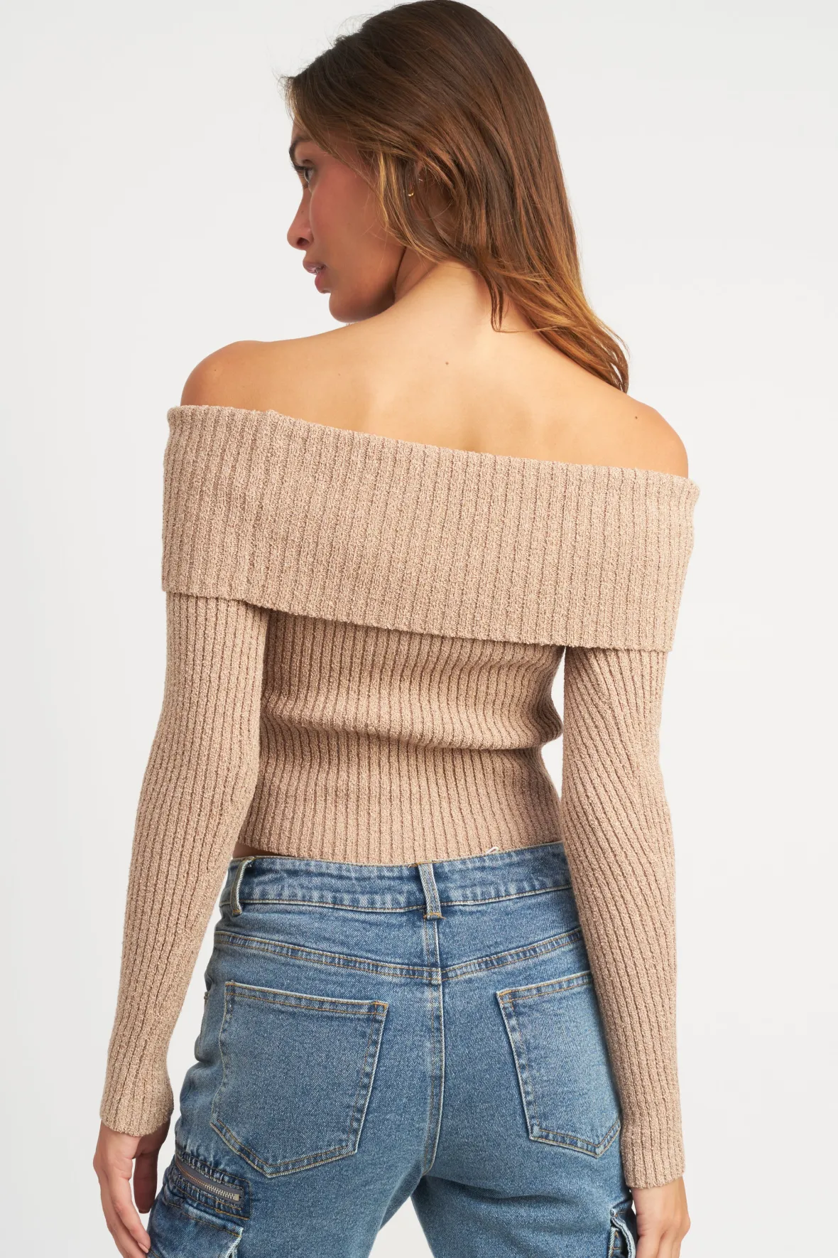 60% Acrylic 40% Polyester Long Sleeve Off Shoulder Top Size & Fit :Model Wears Size SmallModel’s Height: 5’9