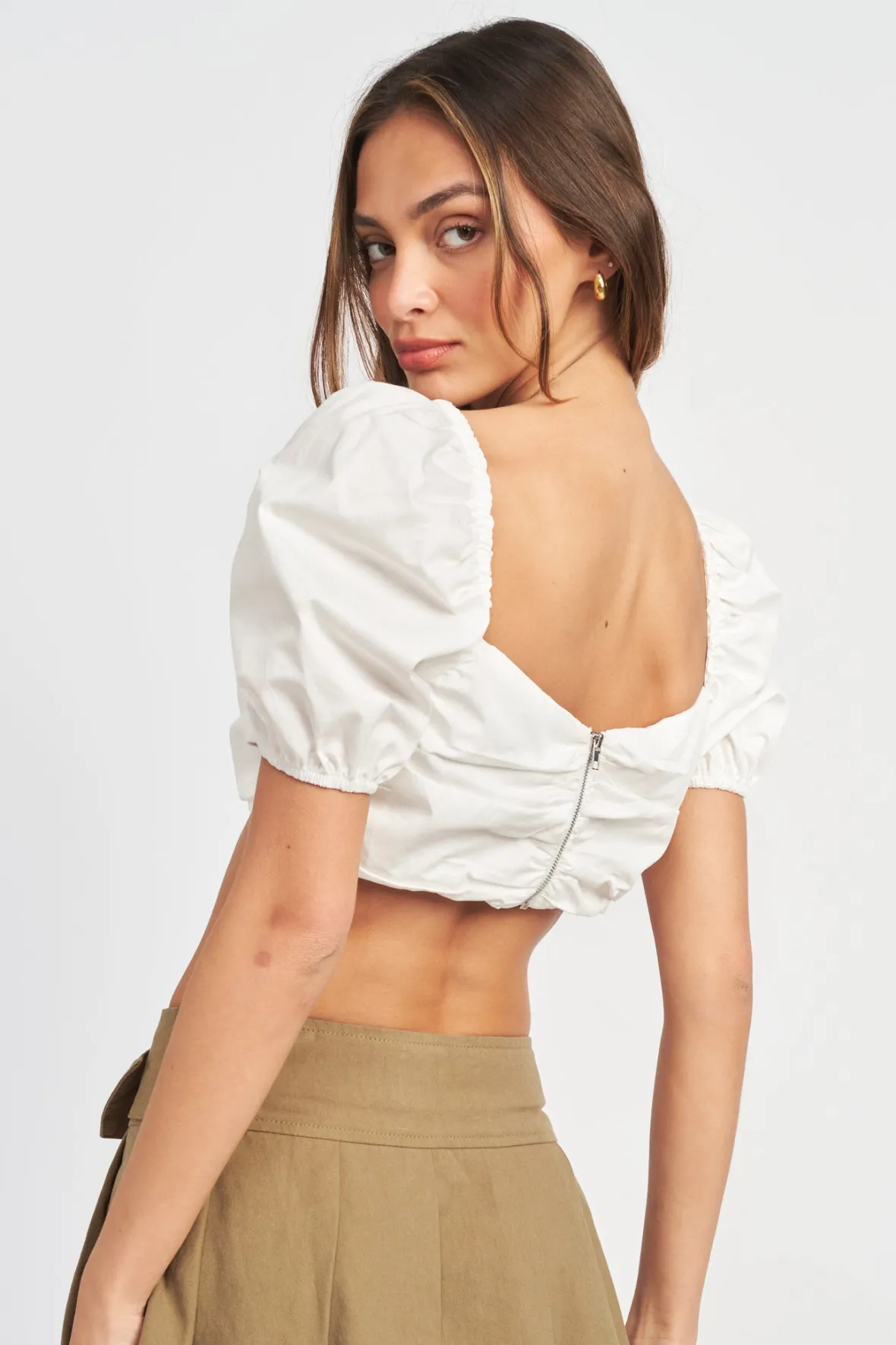 100% Cotton Puff Sleeve Crop Top With Ruched Detail Size & Fit :Model Wears Size SmallModel’s Height: 5’9
