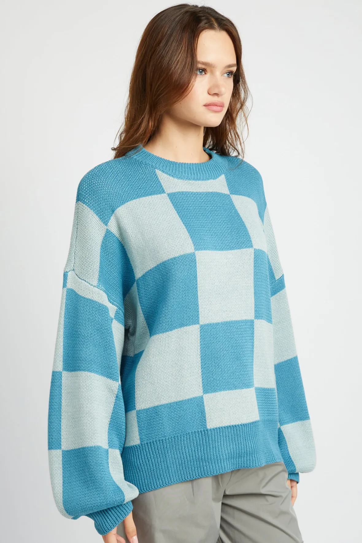55% Acrylic 45% CottonCheckered Sweater With Bubble SleevesSize & Fit :Model Wears Size SmallModel’s Height: 5’9